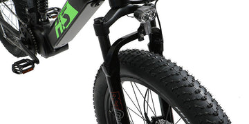 Mid Motor & Dual Suspension & Dual BatteryThe FAT-HS has a Bafang mid-drive motor with 1000 nominal watts of power and a whopping 160 Newton meters of torque, for a max speed of 48 km/h. This motor feels every bit as powerful as it sounds, and because it’s a mid-drive it’s also able to utilize the gearing of the bike for either extra torque or extra speed, depending on what gear you’re in. This is a feat that hub drives simply cannot do. It’s also something you absolutely want if you plan on tackling extremely steep hills, deep mud, snow or sand, or if you plan on towing a trailer with extra gear, which is something you could most definitely do with the FAT-HS.